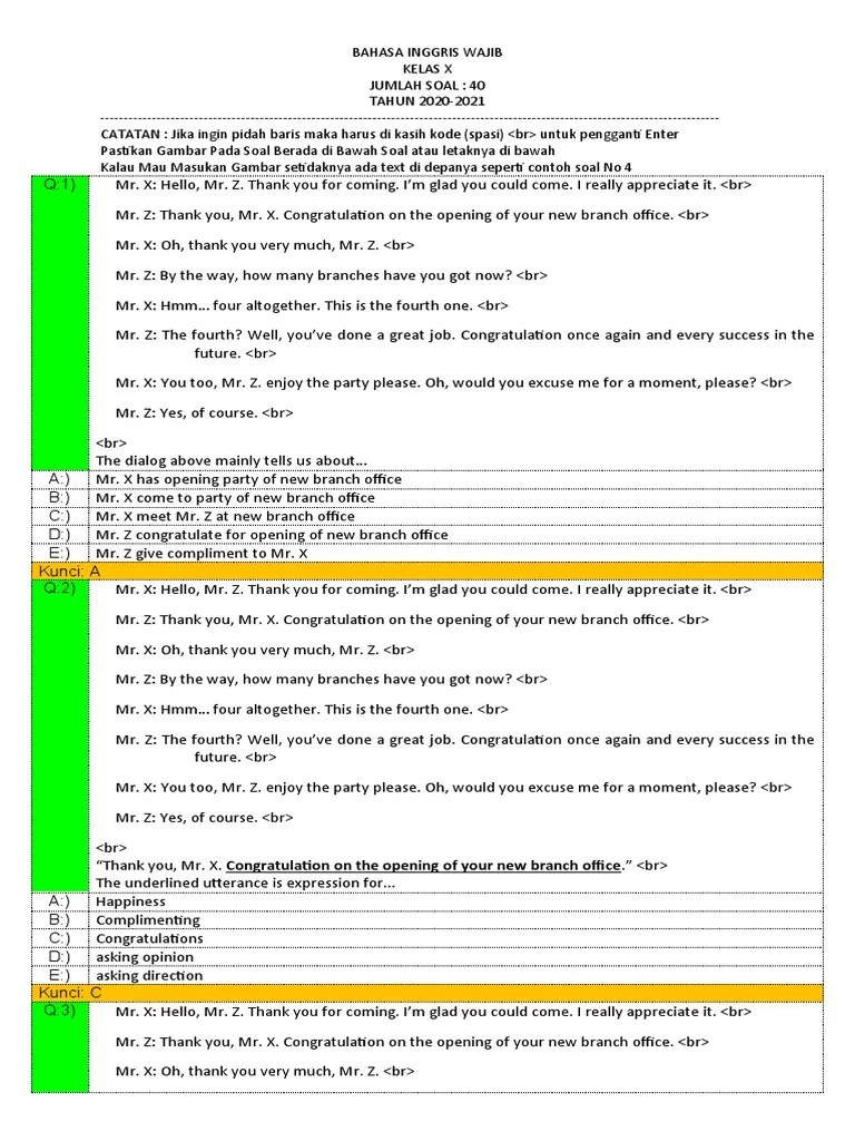 Maka setelah kemarin saya telah membagikan soal uts sma/ma kelas 10 untuk mata pelajaran bahasa indonesia, maka hari ini saya akan membagikan contoh soal . Choose the best and correct answer by crossing (x) a, b, or c! Pembahasan soal bahasa inggris chapter 1: ∙ promo pengguna baru ∙ kurir instan ∙ bebas . Mulai latihan tryout bahasa inggris kelas 10 ujian reading 1. Beli koleksi buku bahasa inggris kelas 10 online lengkap edisi & harga terbaru october 2021 di tokopedia! Talking about self (page 2) kelas 10. Soal latihan ujian semester bahasa inggris sma kelas x paket 20 snow white. Contoh soal complete the summary dalam bahasa inggris. Berikut ini soal pg bahasa inggris beserta jawaban, dimulai dari soal . Choose the right answer by crossing (x) the option a, b, c, or d.